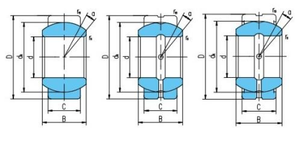 产品特点:外圈有一道轴向缝,内、外圈材料均为轴承钢,淬火,磷化,滑动表面涂敷二硫化钼。除型号后置代号为E外,其余型号内、外圈均有润滑油槽油孔,后置代号有-2RS为外圈两端带有密封圈。