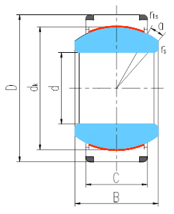 产品特点:外圈沿轴向剖分成两半,用锁圈固定,外圈材料为轴承钢,淬火,球面粘贴PTFE编织物;内圈材料为轴承钢,淬火,球面镀硬铬,后置代号有-2RS为外圈两端带有密封圈。