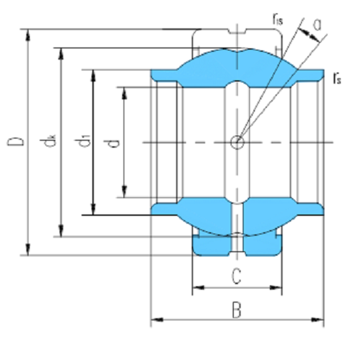 产品特点:内圈两端带伸出圆筒,外圈有一道轴向缝,内、外圈材料均为轴承钢,淬火,磷化,滑动表面涂敷二硫化钼,后置代号有-2RS为外圈两端带有密封圈。