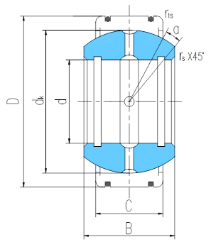 产品特点:外圈沿轴向剖分成两半,用锁圈固定,内、外圈材料均为轴承钢,淬火,内圈球面镀硬铬,外圈两端带有密封圈。